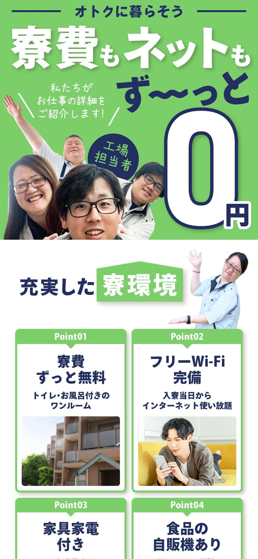 当社は、自社で運営する製造業特化型求人サイト「シゴトクラシ.com」を通じて、年間PV200万・登録者数13万人超の大きな集客力を確保しています。さらに待機寮を活用し、全国から集まった候補者をストック人材として確保することで、最短翌日からのスピード入社を実現しています。